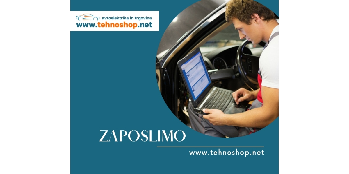 Če si želite novih izzivov in pridobljenih izkušenj, vas vabimo v naš kolektiv! Pošljite nam pisno ponudbo do 30. 11. 2021 na naslov: TEHNO KAR d.o.o., VOJSKARSKA 23A, 5280 Idrija, s pripisom »za razpis: Avtoelektričar-Mehatronik-Avtomehanik« ali po elektronski pošti: tehnoshop@tehnoshop.net