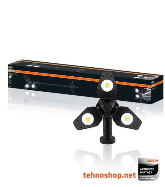Z dvema funkcijama osvetlitve - 57 LED, 10 W in do 6000K ter litijevo baterijo s 3.7 V 4000 mAh, ki jo je mogoče polniti, ima čas delovanja do 5 h (visoko) ali do 10 h (nizko). Z zaščitnim razredom IP44, IK06 je ta reflektor zaščiten pred vdorom delcev z ∅ ≥ 1,0 mm in pred brizganjemvode. Uporablja se lahko tudi kot napajalnik, saj sta integrirani 2 USB povezavi. Osram LEDinspect PRO HELI 1000 je večnamenska LED delovna lučka v izvedbi s stojalom, ki se lahko podaljša do 1,75m in večsmerno glavo, kar pomeni, da se posamezni elementi premikajo neodvisno drug od drugega. Je enostavna za prevoz, ima nedrsečo površino in odbija umazanijo, vsebuje integrirano vrtljivi kavelj za pritrditev za prostoročno delo, zato je idealna kot delovna svetilka za ročne dejavnosti, popravila avtomobilov, obnovitvena in pleskarska dela. OSRAM ponuja tudi 2-letno garancijo na ta izdelek.