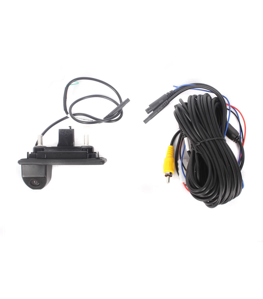 OEM barvna parkirna kamera za namestitev v ročaj zadnjih vrat prtljažnika. Vključuje mikro stikalo za odpiranje vrat. Primerna je za vozila Škoda Fabia II. in Audi A1.