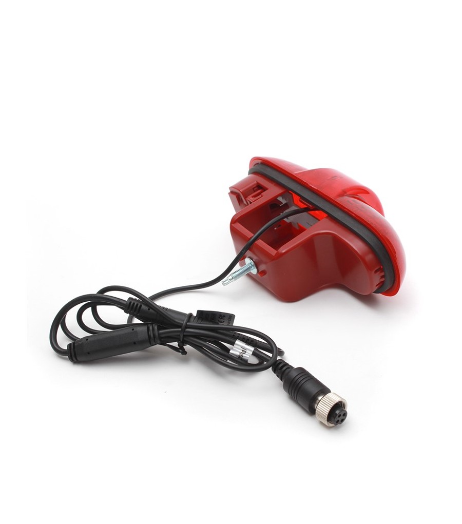 The camera is integrated in the central brake light located in the left wing door, replacing the original brake light. The brake light signaling is provided with integrated LEDs. The connector is identical to the original connector.